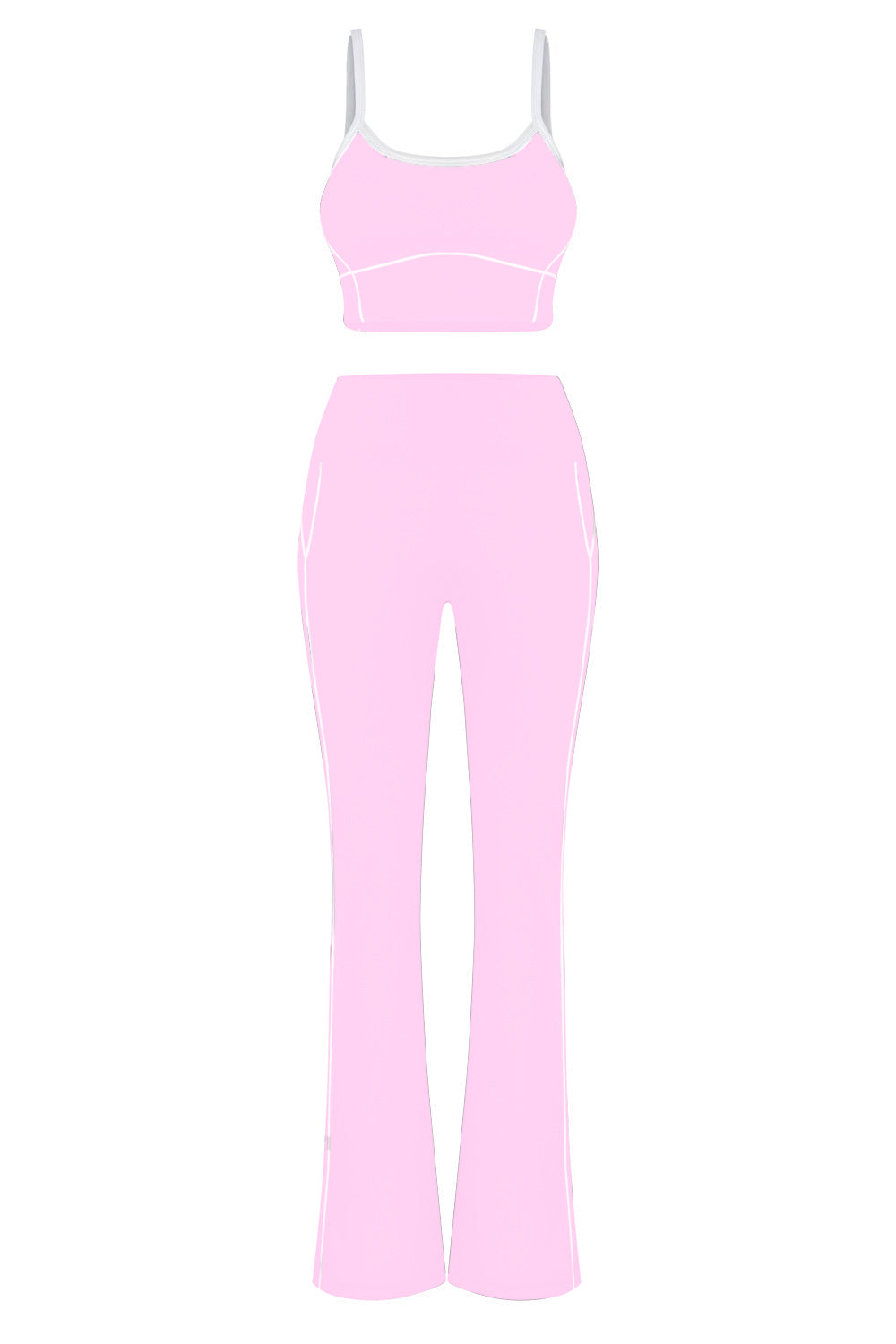 Zestaw, który łączy dopracowany design z funkcjonalnością. Top z charakterystycznym cięciem i dopasowanym krojem podkreśla sylwetkę i trzyma formę podczas ruchu. Legginsy z wysokim stanem i lekko rozszerzaną nogawką nadają proporcje „hourglass” i subtelnie wydłużają linię nóg.