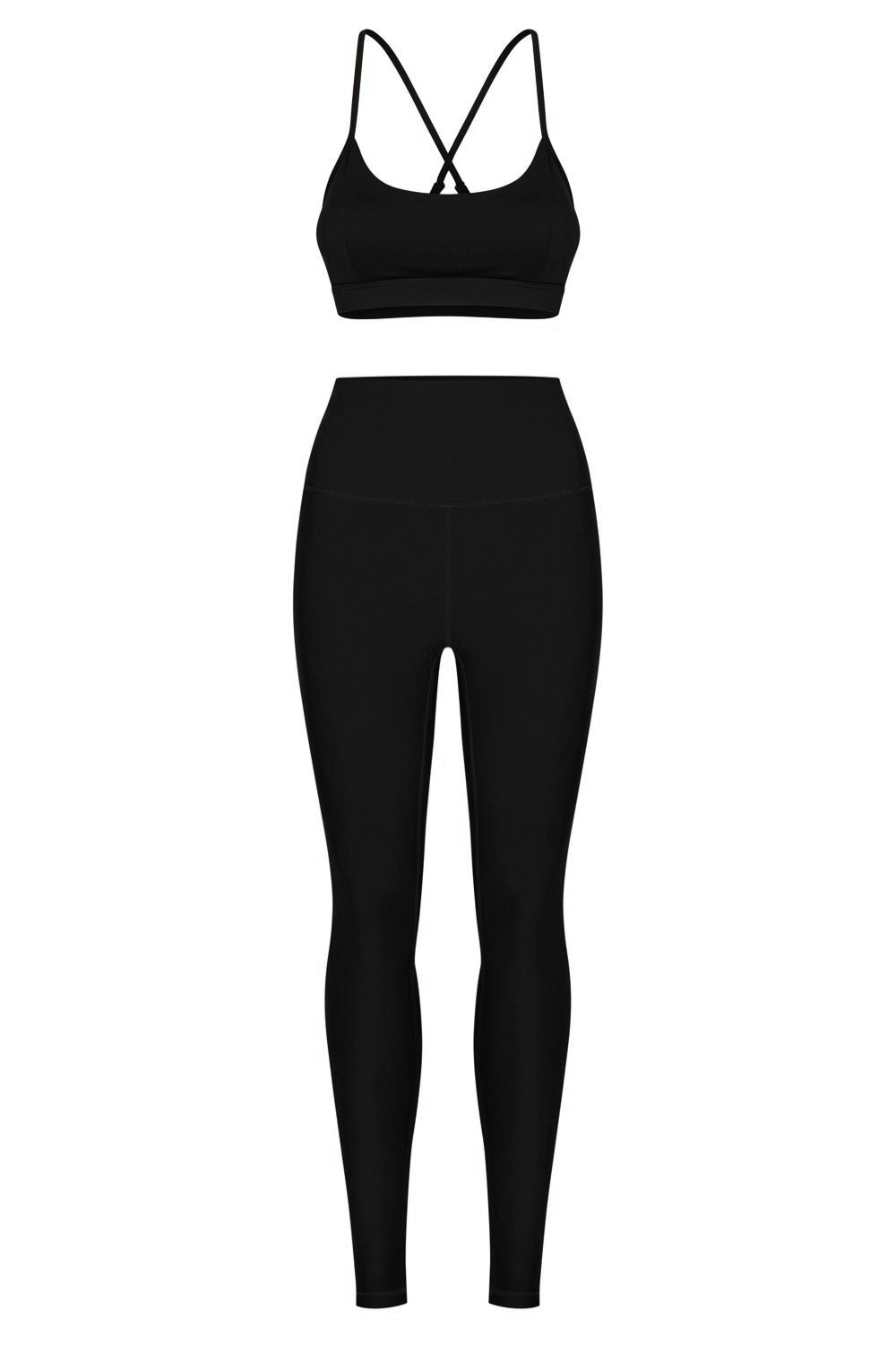 Komplet stworzony z myślą o równowadze między funkcjonalnością a estetyką. Top o minimalistycznym kroju dopasowuje się do sylwetki i zapewnia swobodę ruchów, a legginsy z wysokim stanem podkreślają talię i modelują kształty bez utraty komfortu.